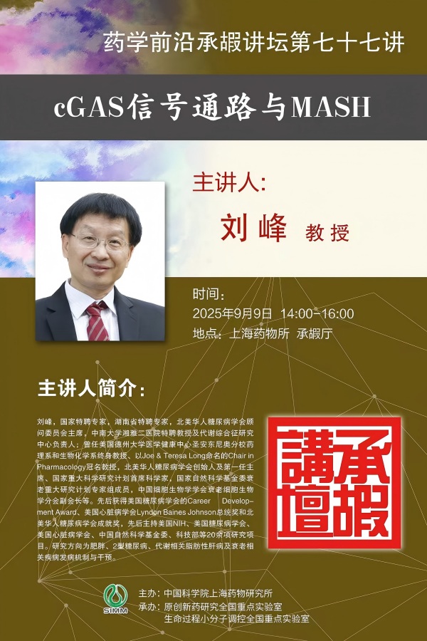 中南大学湘雅二医院刘峰教授应邀作药学前沿承嘏讲坛第七十七讲