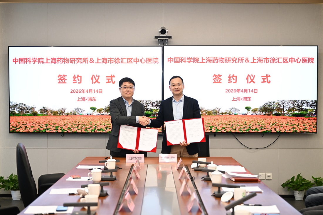 2026年4月14日,徐汇区中心医院院长宋振举、党委书记汪澜一行调研上海药物所。上海药物所党委书记、副所长赵健等接待了来访团队,并召开座谈会。