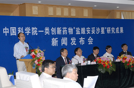 李家洋副院长在新闻发布会上发表讲话,他强调,今年是中科院建院60周年,也是“十一五”新药创制重大专项的启动之年,在这个时候取得这样的成果会给我们更大的鼓舞和信心,这一成果的取得是科研团队在国家战略的指引下,经过长期艰苦努力的结果,是中科院实施知识创新工程和国家实施“重大新药创制”重大科技专项取得的一项重要成果、也是研究所和企业联合开发创新药物的一个成功范例。
