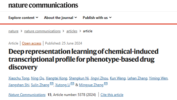 2024年6月25日,中国科学院上海药物研究所郑明月课题组在Nature Communications期刊发表题为“Deep representation learning of chemical-induced transcriptional profile for phenotype-based drug discovery”的研究论文。该研究提出基于自监督表征学习的深度生成模型TranSiGen,学习化学微扰转录组表征用于药物表型筛选。
