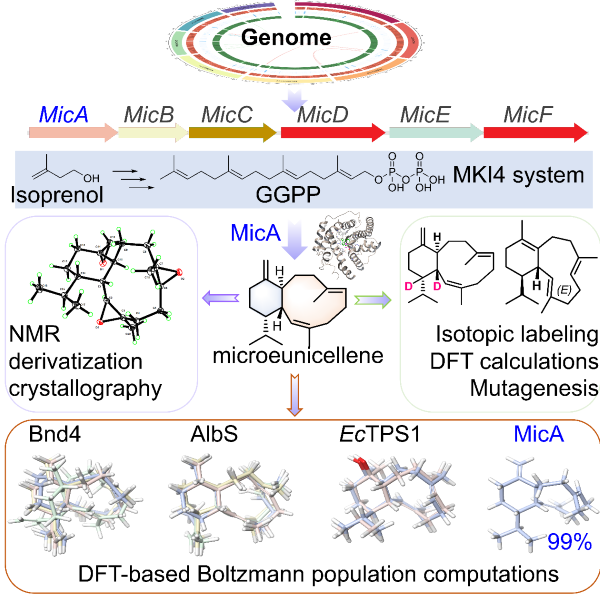 Nat Commun | 上海药物所合作发现非柔性eunicellane二萜碳骨架合酶MicA
