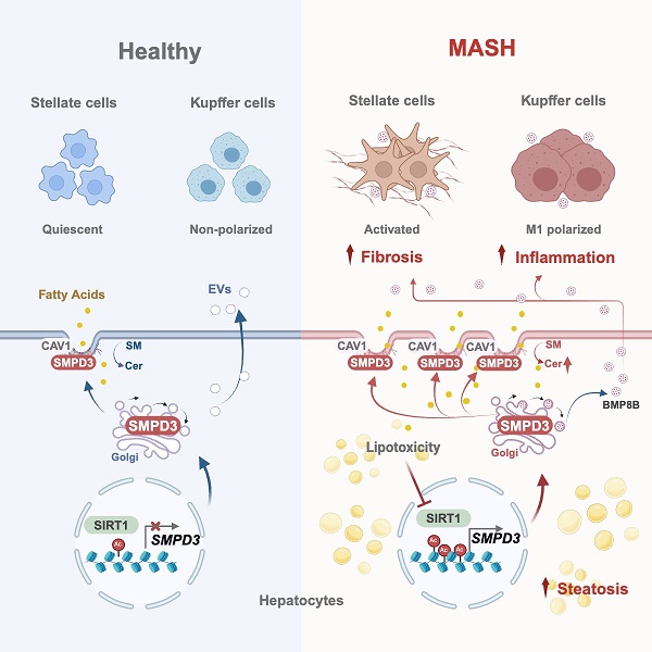 代谢功能障碍相关脂肪性肝炎(MASH)是一种以肝脏脂质过度堆积为起点的慢性肝病。随着病程进展,MASH可引发肝脏炎症、肝细胞损伤及纤维化重塑,最终可能导致肝硬化甚至肝细胞癌。尽管靶向抑制脂质从头合成的药物能够有效减少肝脏脂质积累,但其在阻止MASH进展方面效果不一,且全面抑制脂质合成可能因影响膜系统稳定性而导致细胞死亡,加剧肝脏损伤并推动MASH的进一步发展。有研究认为,特定的毒性脂质而非肝脏内总脂质负担,是MASH恶化的推动因子。