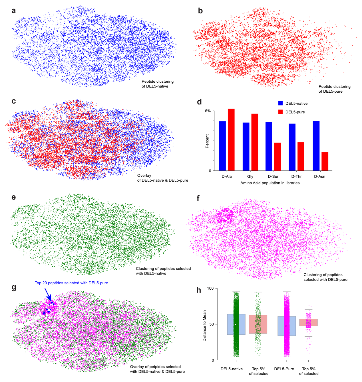 图2. 传统DNA编码多肽文库与纯化PDEL在亲和筛选结果上的对比分析