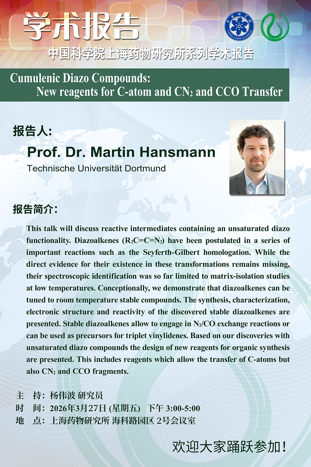 学术报告:Cumulenic Diazo Compounds:New reagents for C-atom and CN2 and CCO Transfer