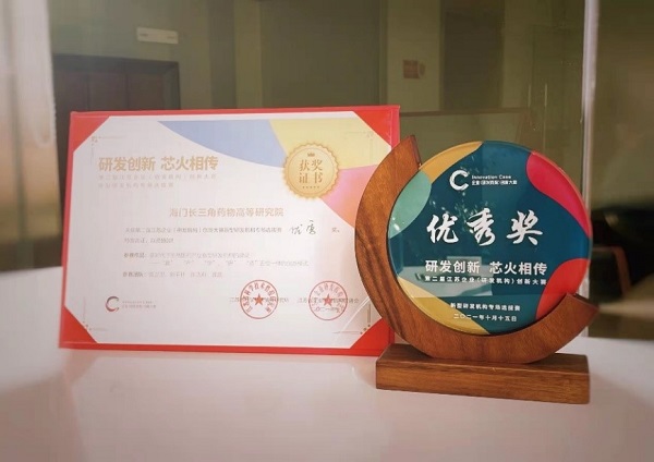 2021年10月15日,由江苏省科学技术厅指导、江苏省企业研发机构促进会和江苏省科学技术情报研究所主办的第二届江苏企业(研发机构)创新大赛在南京软件谷举办。长三角药物高等研究院获评创新大赛“优秀奖”。