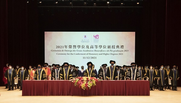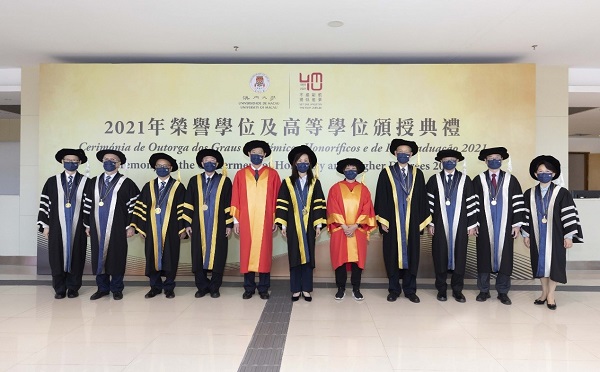 颁授典礼上,澳门特区政府社会文化司司长欧阳瑜在澳门大学校董会主席林金城、校长宋永华陪同下,向七位杰出人士颁授荣誉博士学位。其中,上海药物所陈凯先院士获荣誉理学博士学位。