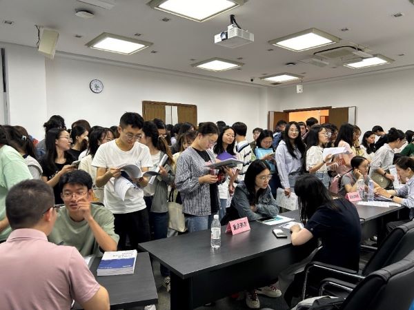 宣讲会后,用人单位招聘主管与毕业生进行双向选择。招聘岗位涵盖药物研发、生产、营销及职能等多个方向,学生们根据个人兴趣选择心仪的单位递交简历,并与招聘主管进行深入交流。在问答互动中,双方进一步加深了了解,就人才需求和供给进行了充分沟通。