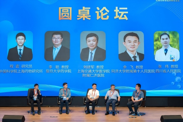 圆桌论坛环节由程震主持。复旦大学药学院李聪教授、上海交通大学医学院附属仁济医院刘建军教授、同济大学附属第十人民医院余飞教授以及四川省人民医院张伟教授齐聚一堂,围绕分子影像与核药发展的前沿问题展开热烈讨论。专家们就分子影像未来的发展方向、其在药物研发中的关键作用、临床对核药研发的迫切需求,以及α核药的优势与挑战等话题各抒己见,并结合临床实践探讨了分子影像在疾病早期发现、精准分型及治疗决策中的价值,展望了未来5—10年我国分子影像探针在临床端的应用格局。自由而深入的交流为分子影像与核药的融合创新注入了新的思路与启示。与会专家一致认为,分子影像与药物分析的深度融合将在新药靶点发现、药代动力学研究、个体化用药与疗效评估等方面发挥更大作用,加速我国在核药研发和分子影像技术应用上的国际竞争力。