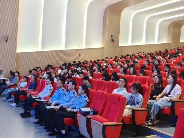 2025年10月14日,上海药物所在牛顿路园区举办研究生思政安全大讲堂系列活动之“抵制网络谣言与规范网络言行”专场活动。活动特邀浦东公安分局网安支队副大队长李警官作主题教育。张江高校派出所所长计晓意、副所长池骋迪等出席本次活动。近500位研究生积极参与学习交流。