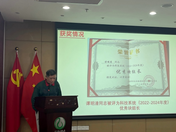 近期获评科技系统(2022-2024年度)优秀块组长的谭明清同志,分享了自己十年块组长岗位上的工作感悟。他介绍,担任块长期间,他始终以真情换真心,当好药物所与老同志间的“连心桥”,同时积极投身歌舞、摄影兴趣小组及各类志愿活动,主动发挥余热。他表示,将以此次获奖为新起点,坚守服务初心,持续做好老同志服务工作。